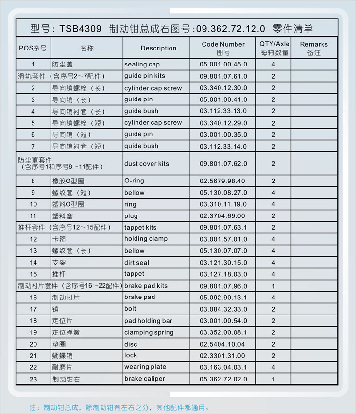 制動(dòng)鉗總成組件